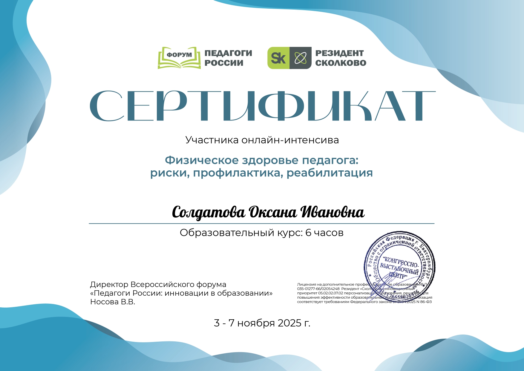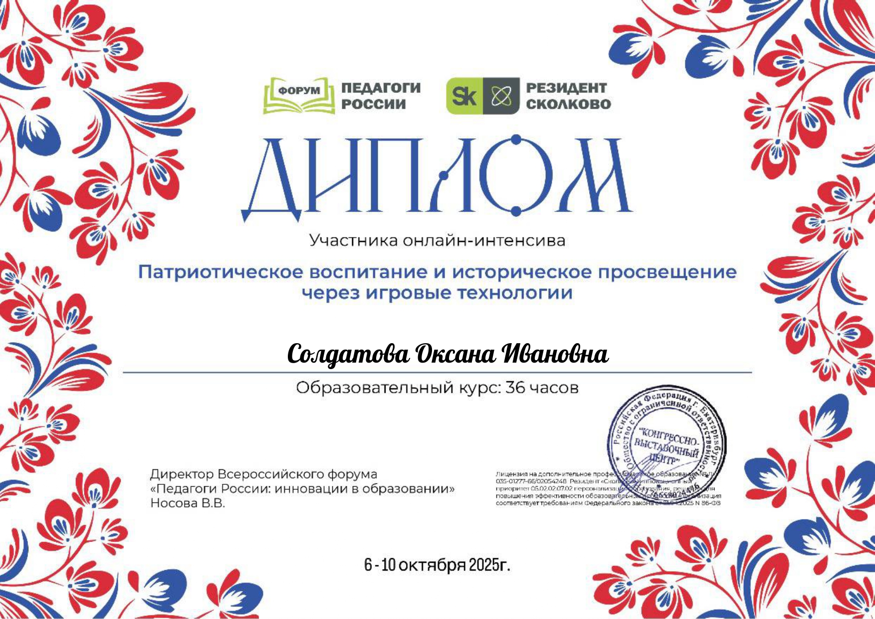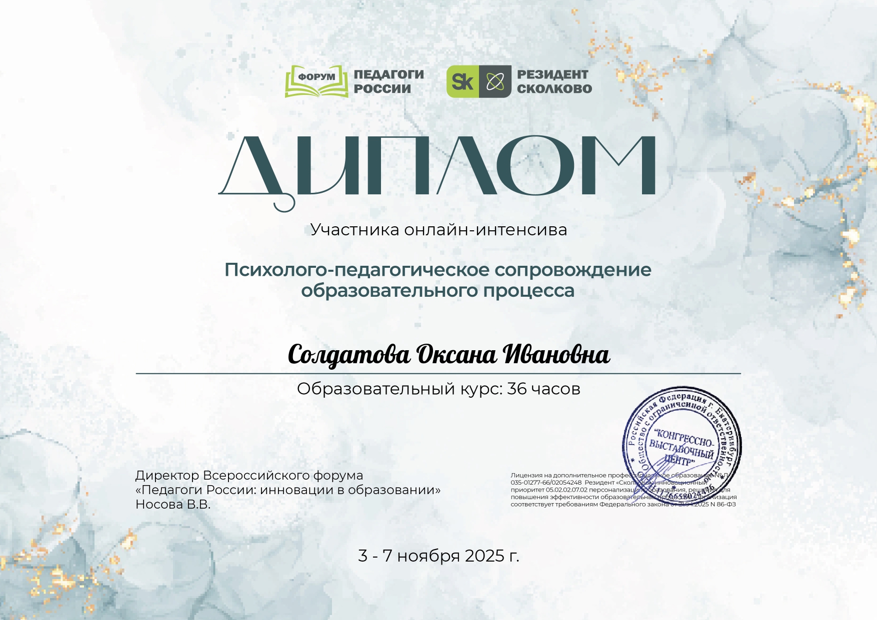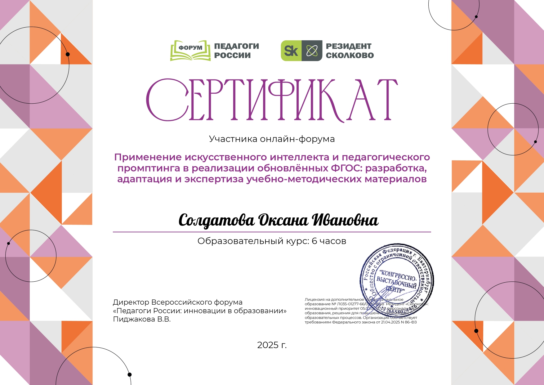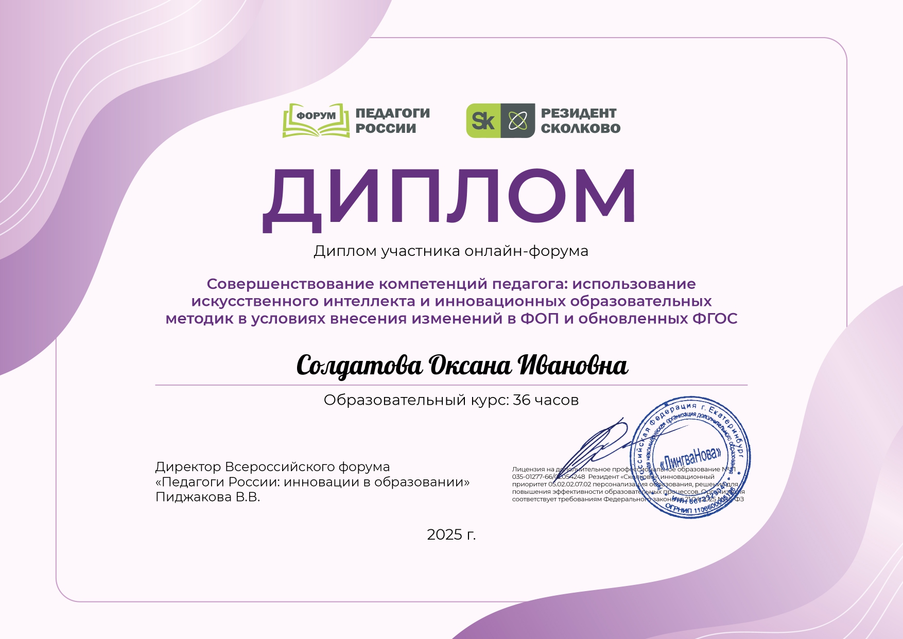 Сертификат участника онлайн курса всероссийского форума "Педагоги России"