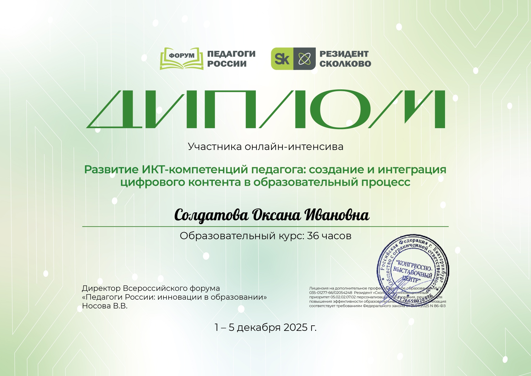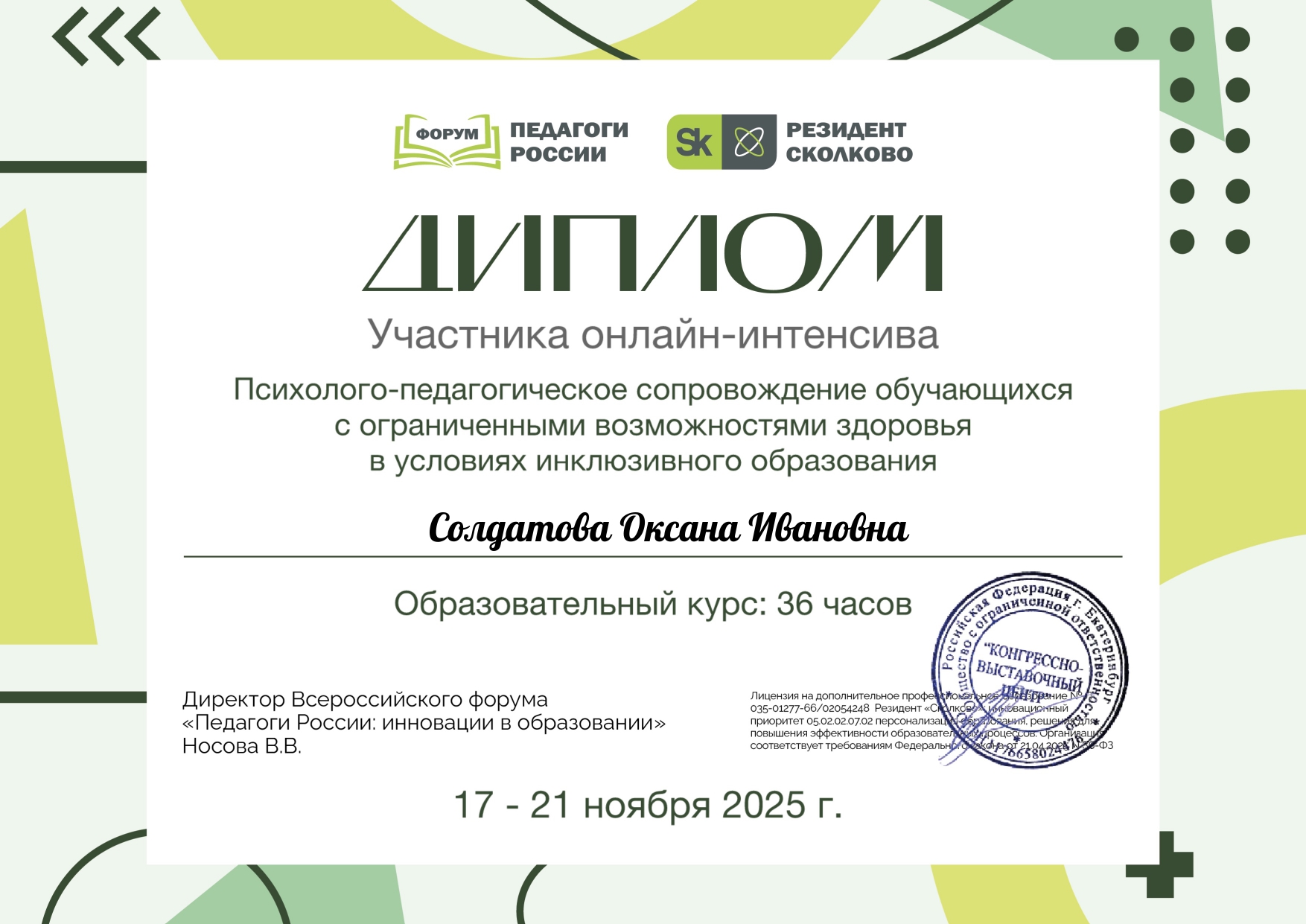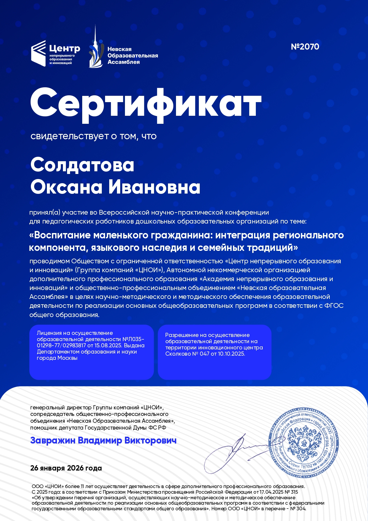 Удостоверение участника Всероссийской образовательной конференции