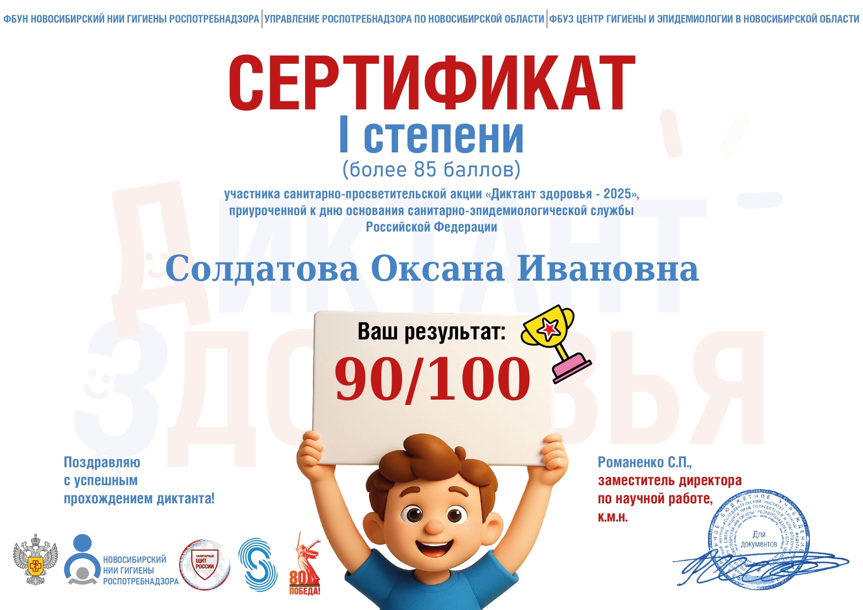 сертификат по санитарно - просветительской программе