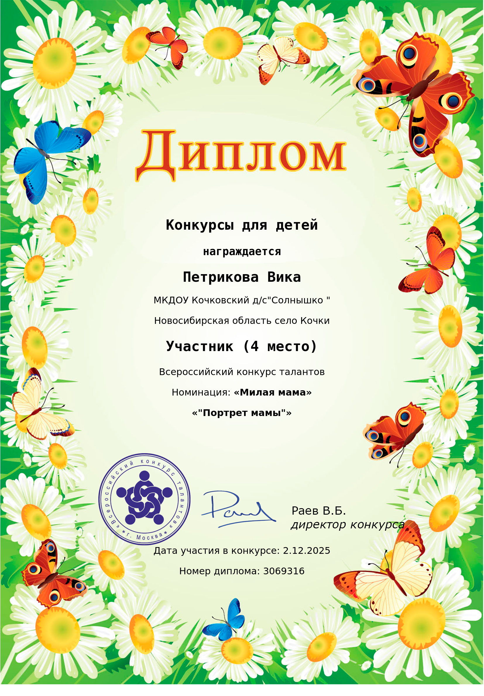 диплом участника