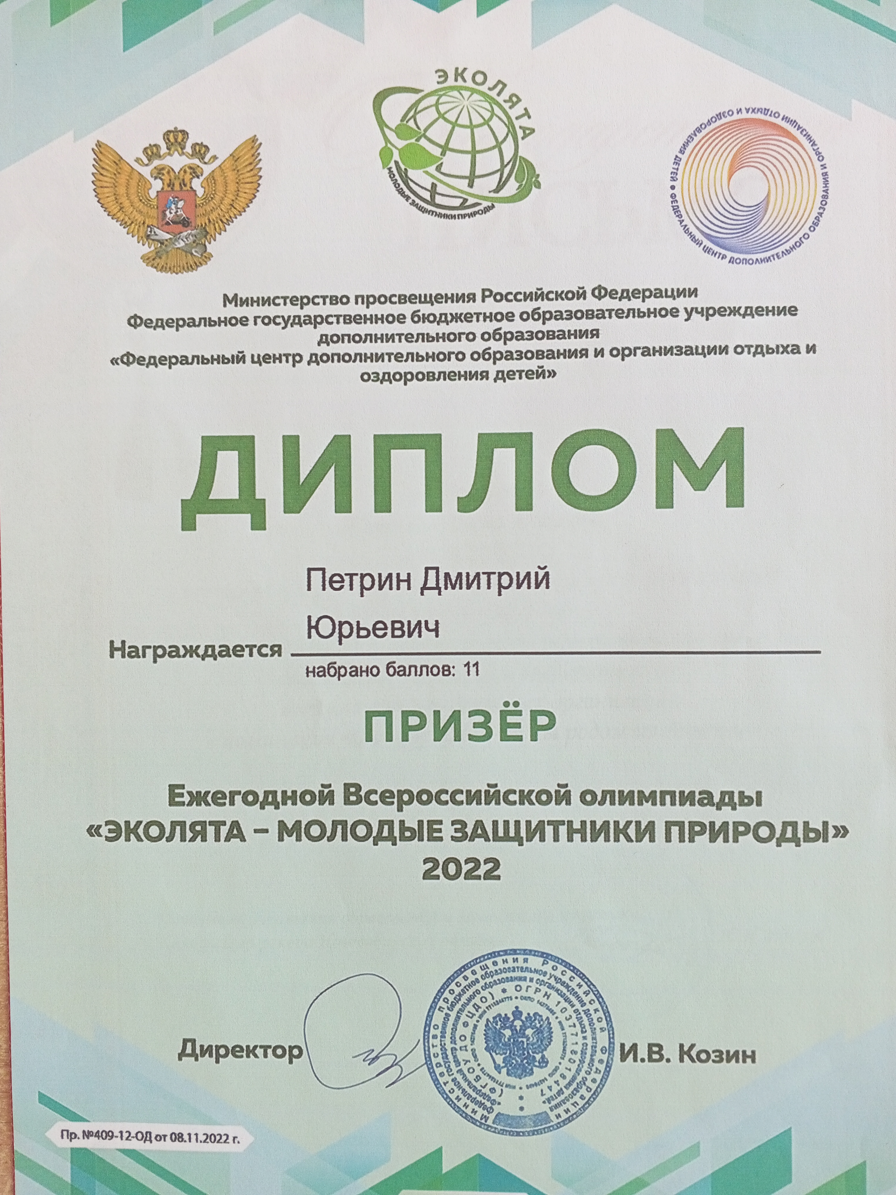 диплом призёра